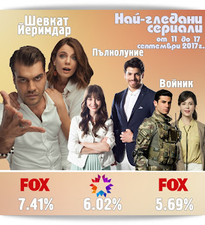Време е да научим кой е най-гледаният сериал, коя е най-гледаната телевизионна програма и коя е най-гледаната телевизия за периода от 11 до 17 септември 2017 г. в южната ни съседка!