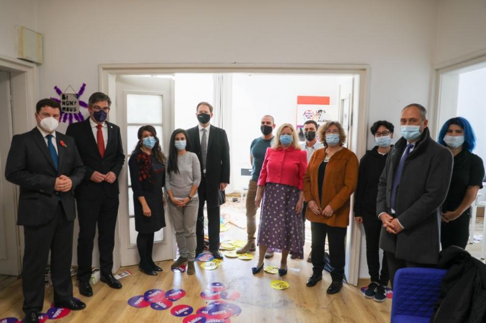 Посланиците Мустафа, Диксън (ОК), Фийни (Ирландия), Нилсен (Дания), Робин (Франция), ван дер Бург (Нидерландия) и шарже д’афер Бекерс (Белгия) посетиха Хъба, за да изразят солидарност с нашите приятели и партньори след този нелеп акт на насилие.