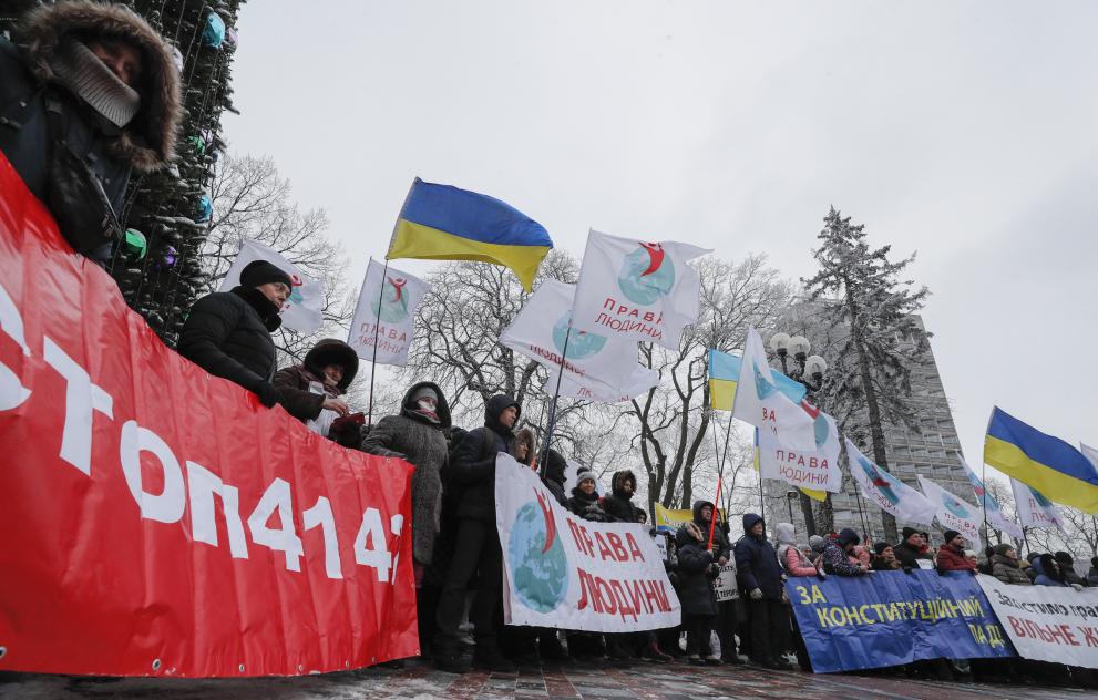 Пред Върховната Рада в центъра на Киев се проведе протест на предприемачи. Те настояват за приемане на промени в Данъчния кодекс, които ще облекчи малкия и средния бизнес. Сред исканията е да се премахне задължителното използване на касови апарати.