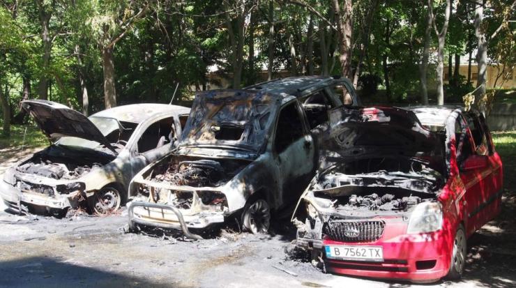 Пожарът е тръгнал от средната кола, която е изгоряла напълно, но и двете съседни коли са унищожени.