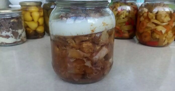 7 лева върви буркан с месо от домашно пиле или кокошка.